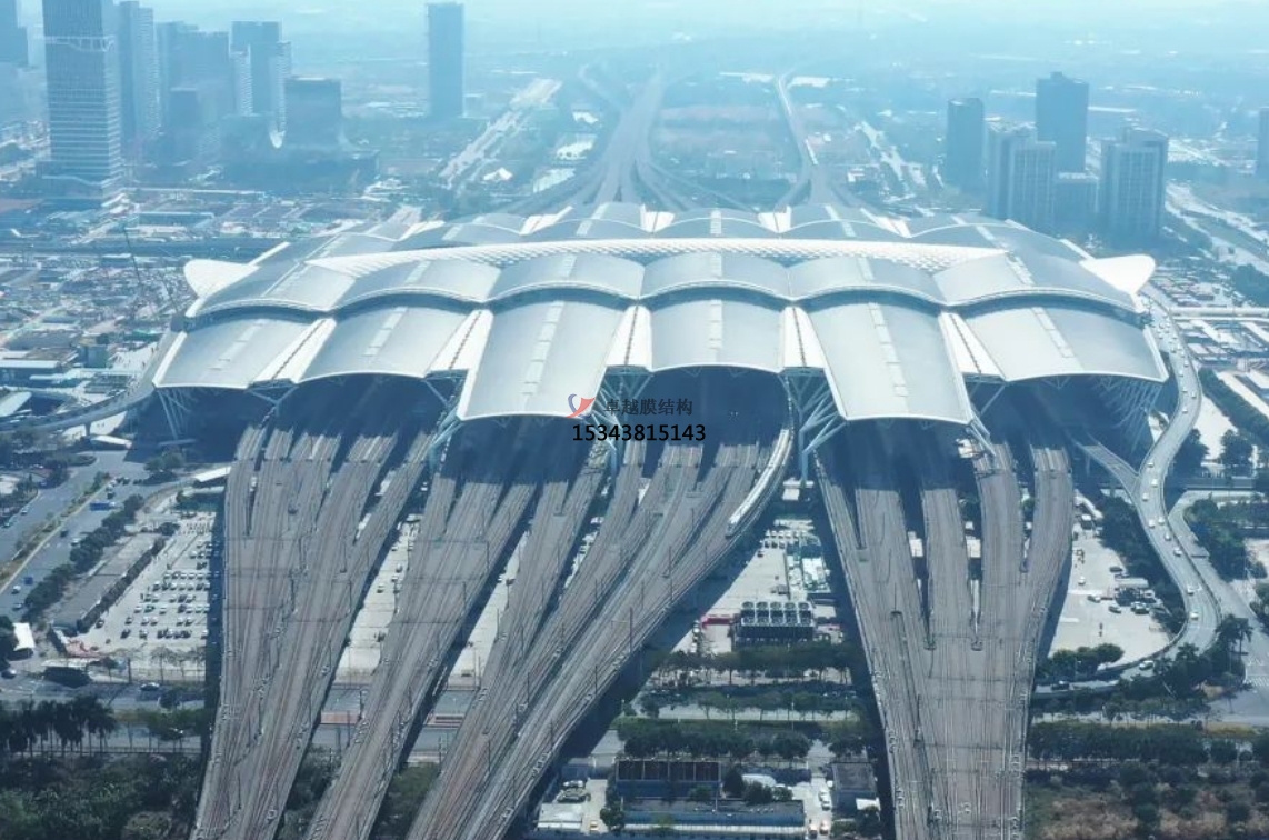 高鐵站膜結(jié)構(gòu)是一種采用高強度高耐久性的膜材料作為覆蓋層,并通過鋼索、鋼架等支撐體系構(gòu)成的空間結(jié)構(gòu)。這種結(jié)構(gòu)在高鐵站建設中具有顯著的優(yōu)勢和應用價值。